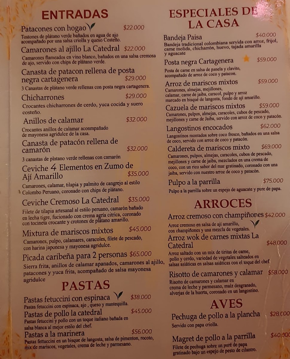 La Catedral Restaurante is a gem nestled in the heart of Cartagena's Ciudad Amurallada. Renowned for its authentic Colombian cuisine, this delightful eatery offers a memorable dining experience. Signature dishes like the coconut shrimp and bandeja paisa steal the spotlight, delighting both locals and travelers alike. Diners rave about the fresh seafood, particularly the grilled sea bass and langostinos encocados. Service here is warm and attentive, with staff, like the highly praised Luis, adding to the inviting atmosphere. While it may lack air conditioning, the joyful flavors and vibrant ambiance make La Catedral a must-visit culinary destination.